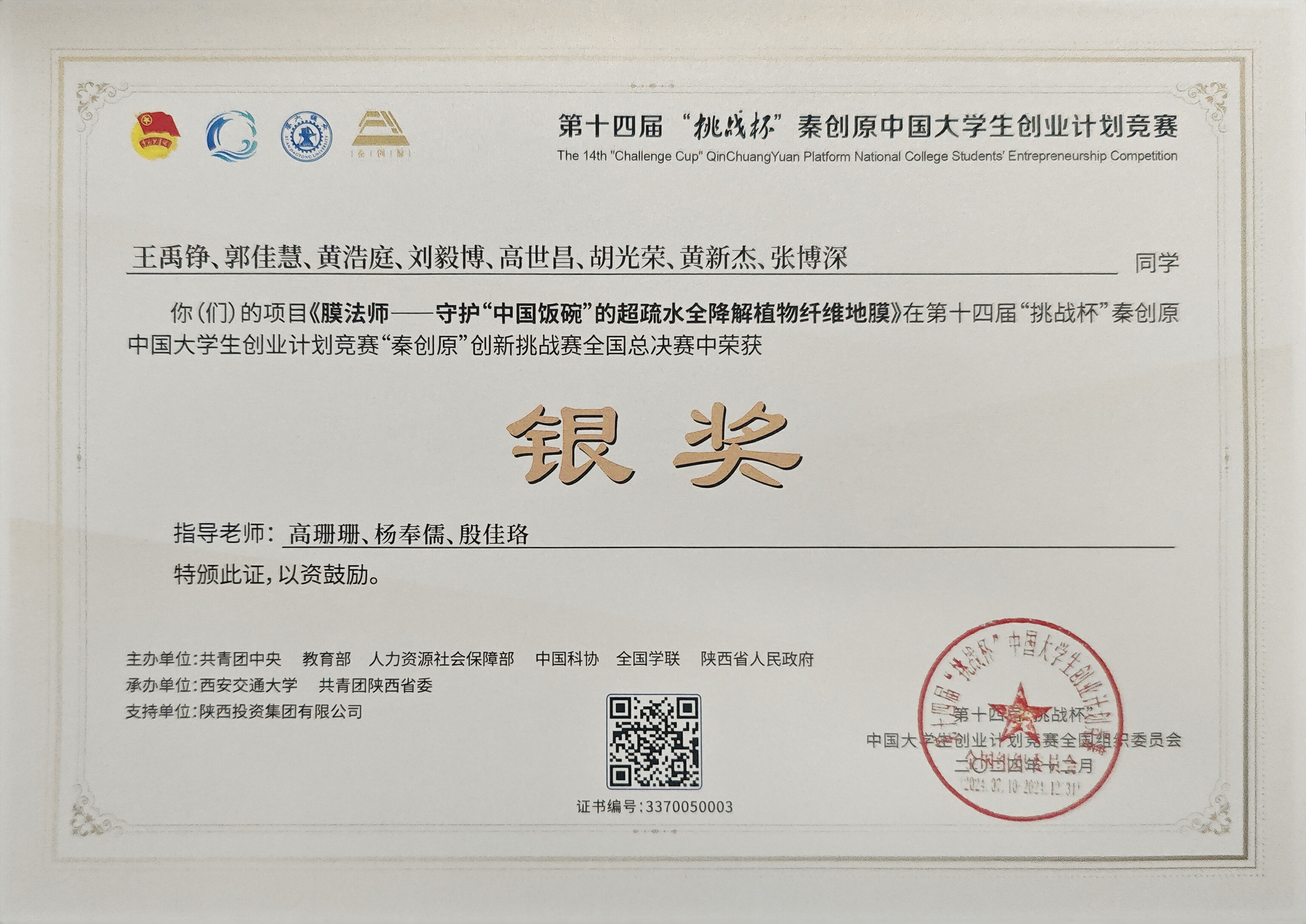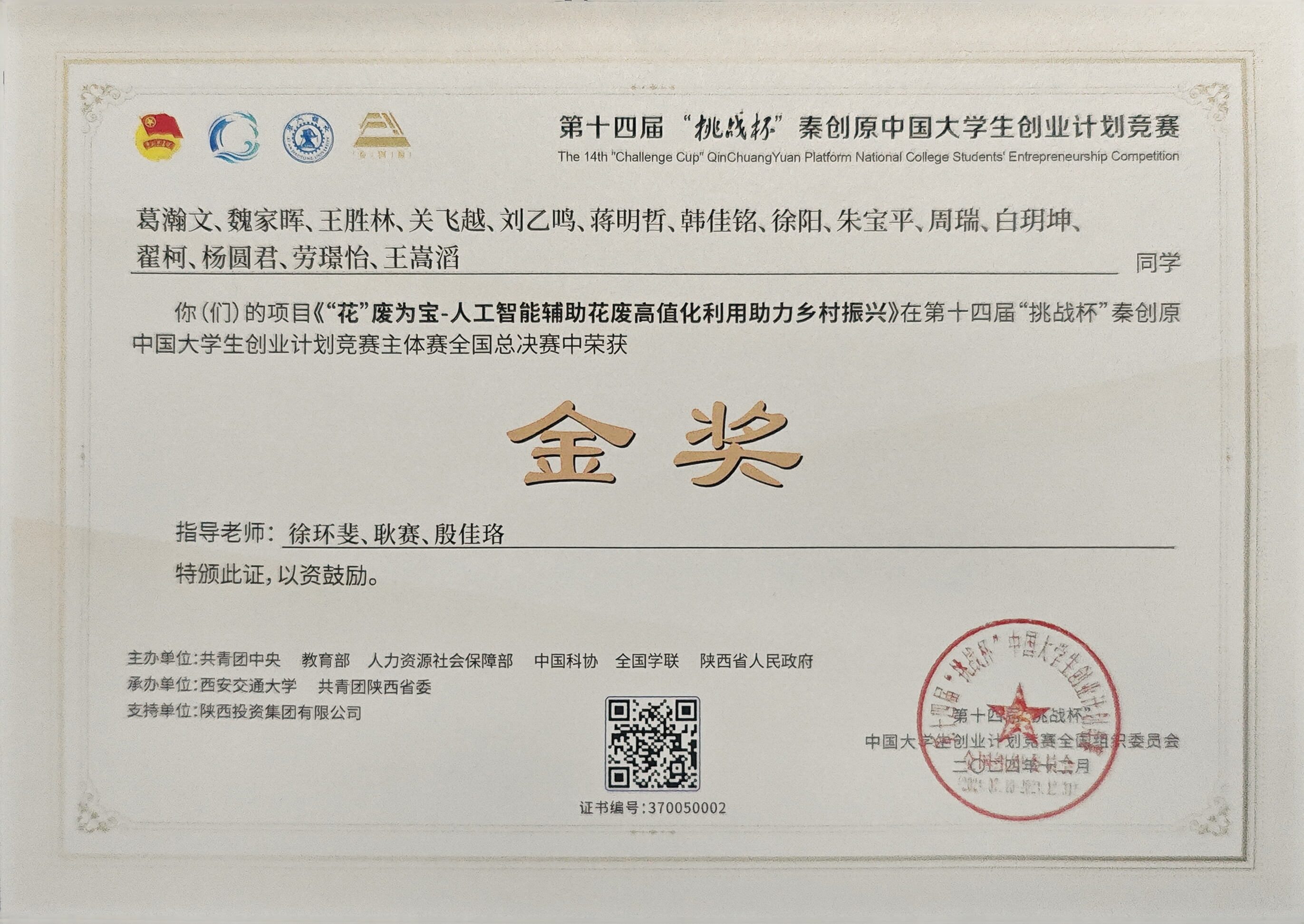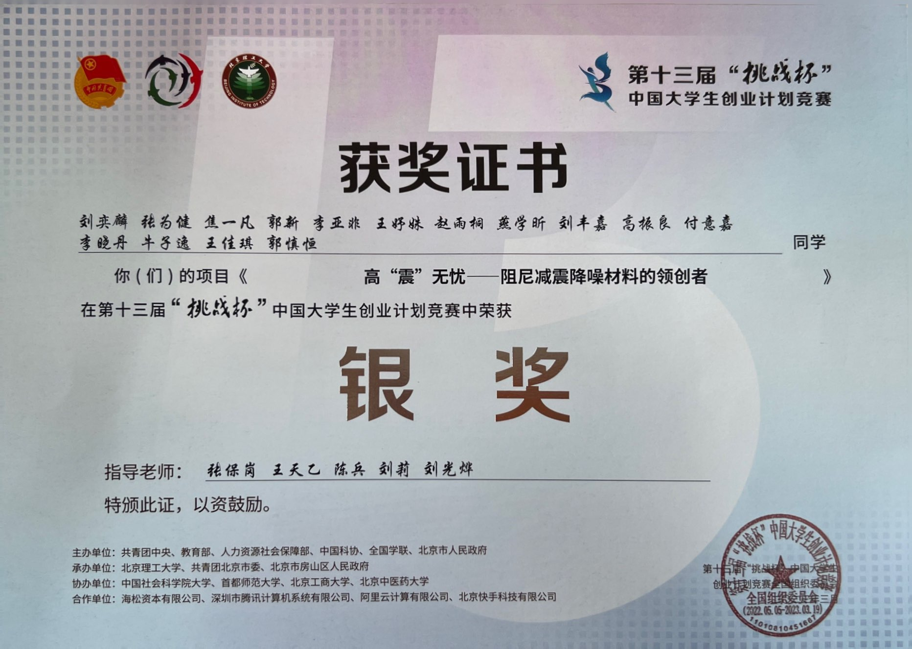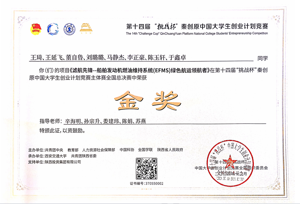 2021-2024“挑战杯”中国大学生创业计划竞赛国家级金奖5项、银奖8项、铜奖6项