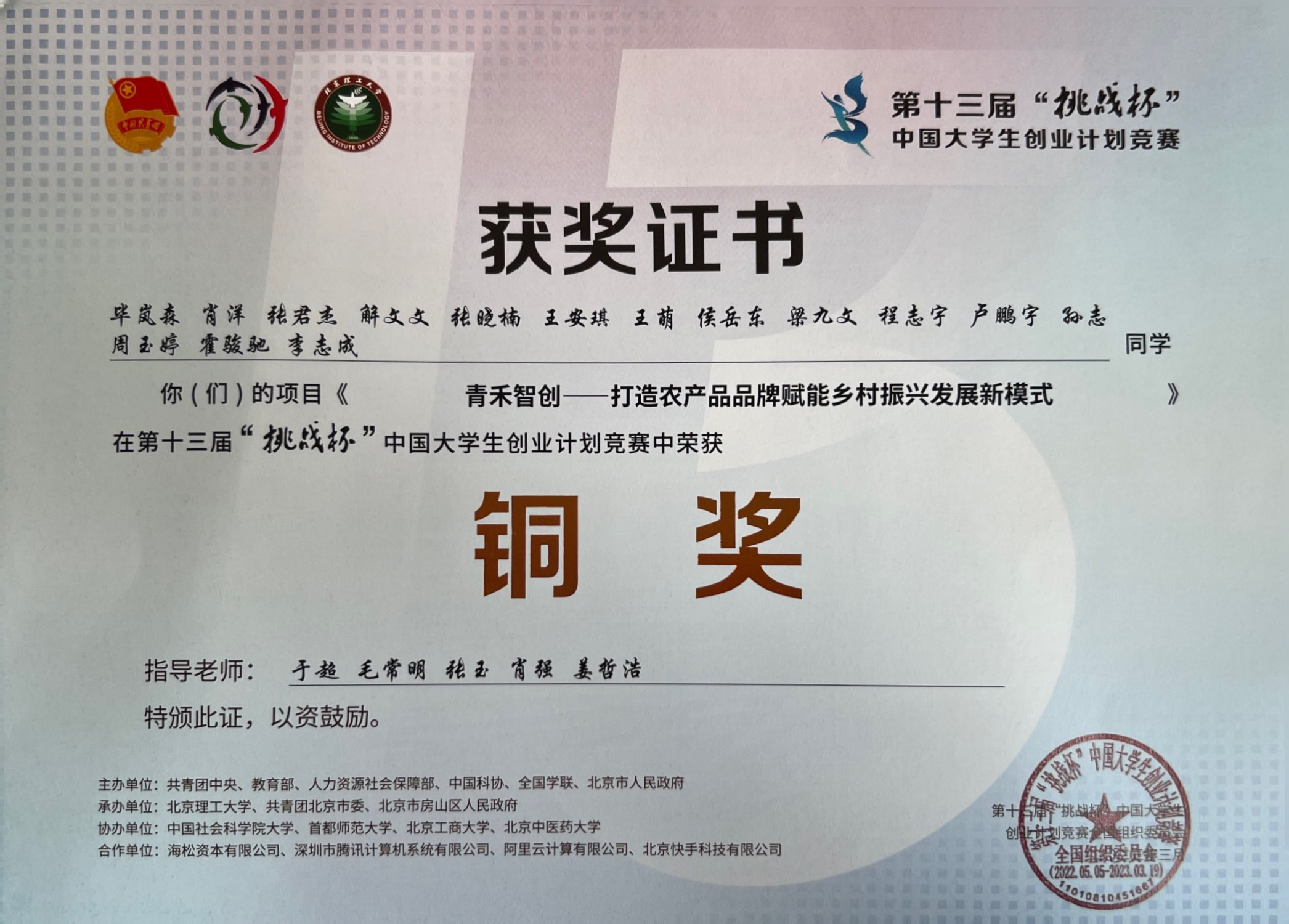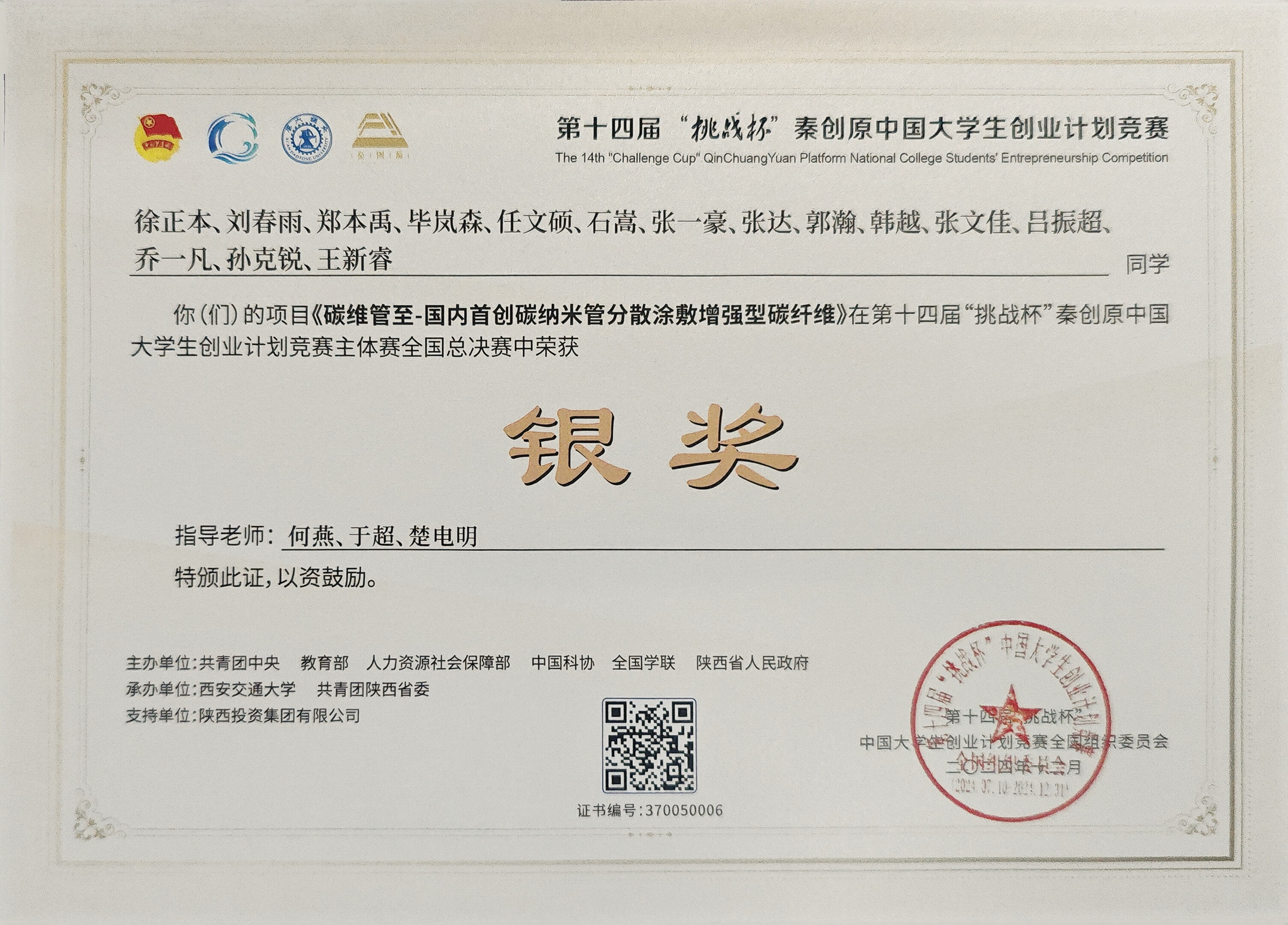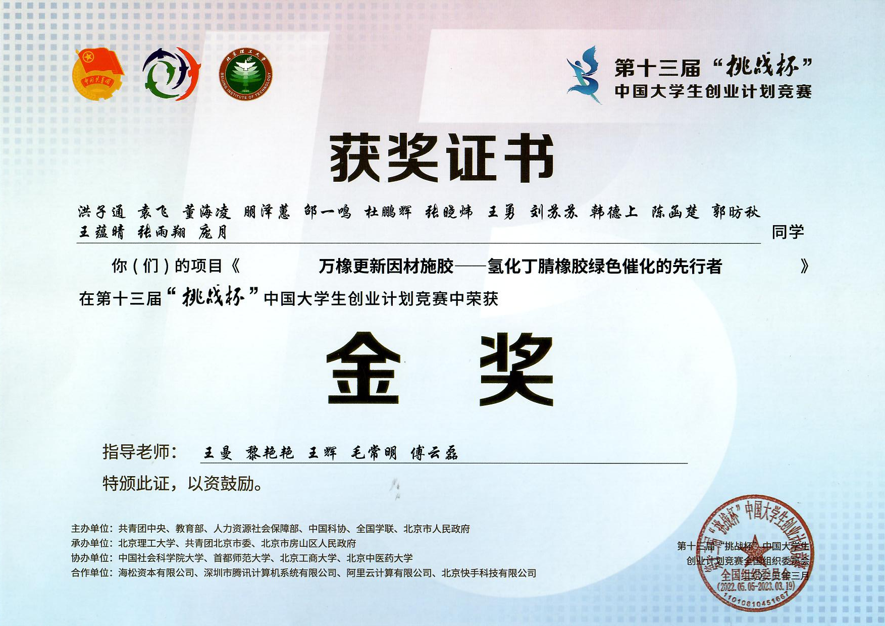 2021-2024“挑战杯”中国大学生创业计划竞赛国家级金奖5项、银奖8项、铜奖6项